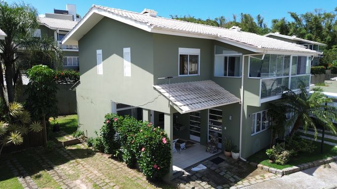 Excelente sobrado geminado com 3 quartos, 2 banheiros sociais, ampla sala integrada com lareira, cozinha, lavanderia, sala de TV, quintal com churrasqueira. Vista para mar e Lagoa da Conceição. Lugar ideal para morar ou para investimento na região mais segura e bela de Florianópolis